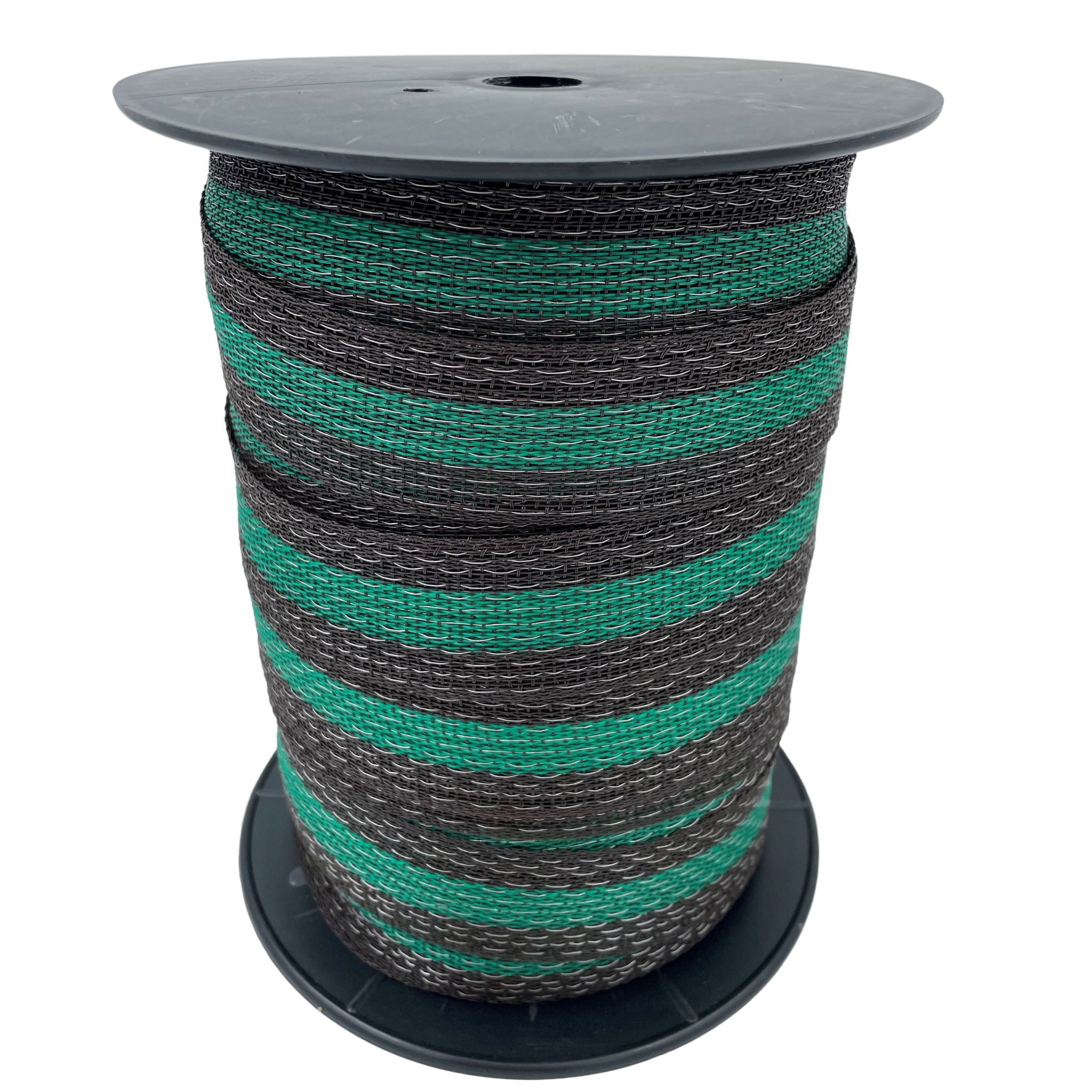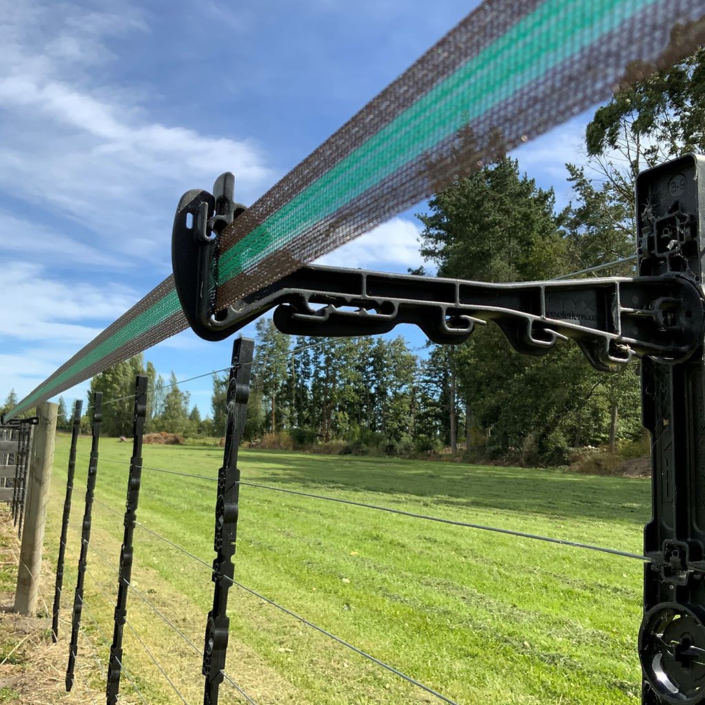High-visibility 40mm equine electric fence tape with 12 stainless steel wires, designed to stay flat and secure in windy conditions. Blends into the landscape while staying visible to horses.